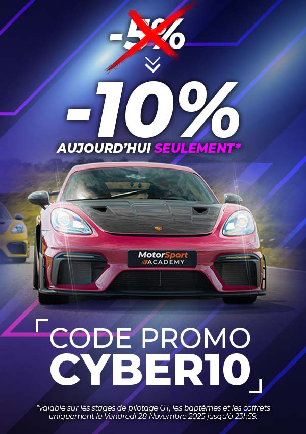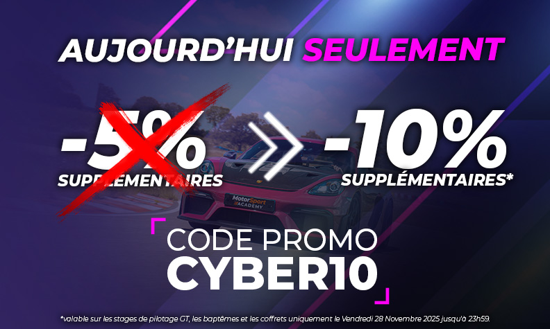 Motorsport Academy, c'est une école de pilotage experte dans son domaine depuis + de 15 ans qui a vu passer de nombreuses voitures : Porsche Cayman S, Lamborghini Gallardo, Ferrari 488 GTB, Audi R8, Aston Martin Vantage... et des circuits de renom comme Le Maison Blanche ou Magny-Cours. Enfin, profitez de l'Alpine A110 R dans le cadeau pilotage ou à l'achat direct avec la carte cadeau.